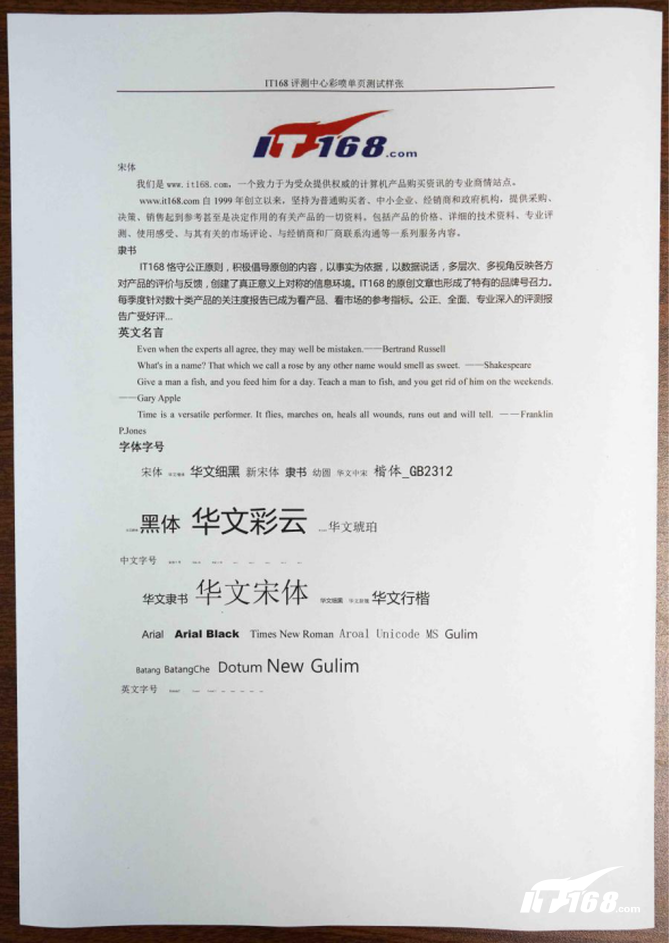 可以看出,MX-C3121R的文字表现相当的清晰,不同的字体特征表现完整,就连文本上最小号的字样都能清晰。