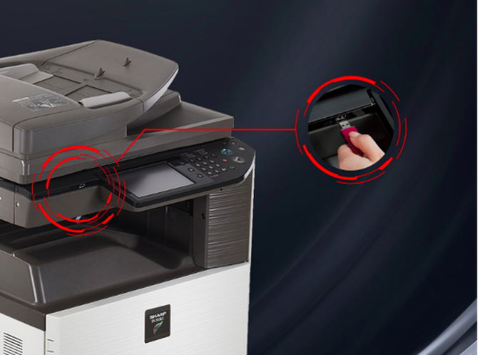 不仅如此,夏普DX-2008UC在机身的前部,位于操作版面的侧面配有USB端口。方便从USB储存器直接打印文件和把文件直接扫描至USB储存器,非常的方便快捷。