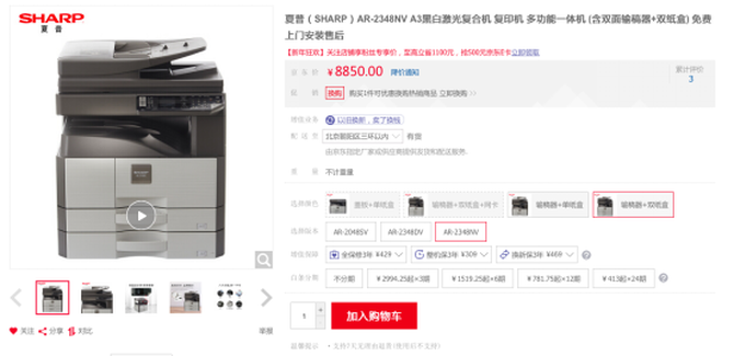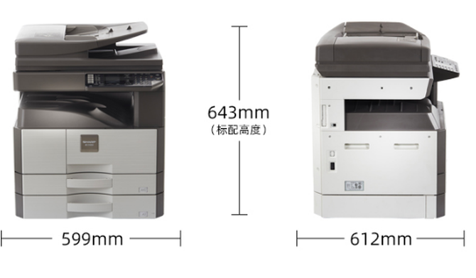 【IT168 行情】夏普AR-2348NV机身重量仅重约34kg,其体积为599*612*643毫米,非常适合中小型企业和日常的办公环境。