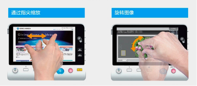 不仅如此,柯尼卡美能达bizhub367还采用了诸多智能创新设计。用户界面采用与智能手机类似的多点触控操作方式。用户在触摸屏上能够采用多种手势进行操作,就像使用智能手机和平板电脑一样的便捷简单。