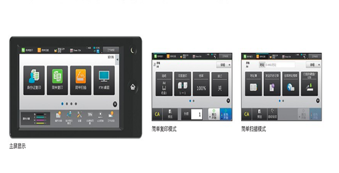 夏普MX-C3081RV采用新型的直观用户操作界面模式,让用户轻松操作复合机的各种先进功能。该模式在10.1英寸的超大彩色LCDC触摸屏上显示功能图标,用户可以自己拖放调整主屏幕上的常用图标,操作高效流畅。