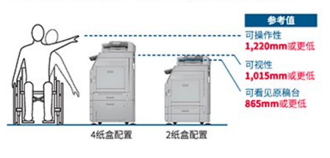 同时,该款复合机在用户操作使用的各个方面,都做了妥善设计。比如控制面板和玻璃稿台的高度设计,不仅可以清楚看见LCD屏幕,还充分考虑到了行动不便人士的使用。