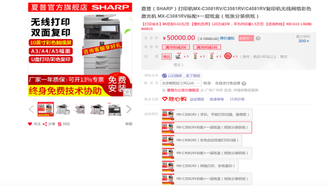 目前该型号设备正在京东商城热销,售50000元,下单不仅可以参加满减活动,还有好礼赠送。