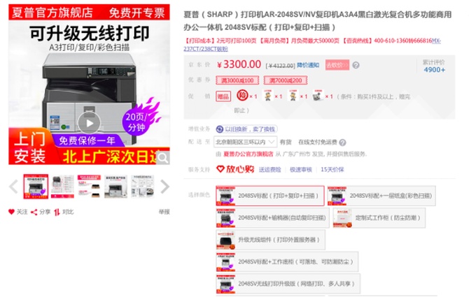 在产品性能上,夏普AR-2048SV拥有高效的办公能力,其输出速度可达到20页/分钟,实现了打印和复印同等速度。同时,2048SV还实现了普通纸质文件可连续自动复印和扫描的操作,一份原稿可连续复印999份,无论是速度还是印量都更胜一筹,这大幅提升了用户的办公效率。