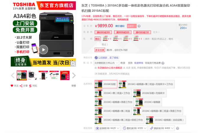 东芝2010AC复合机 京东热销价9599元 【购买链接】