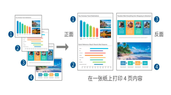 夏普SF-S211XC的二合一打印功能,也是值得一提的。其双面打印功能不仅可实现在纸张的两面进行打印,还可以在一张纸的同一面上打印两页内容。同时使用这两个功能可以让您在一张纸上打印四页内容,大大减少了纸张的使用,节约了用户的使用成本。