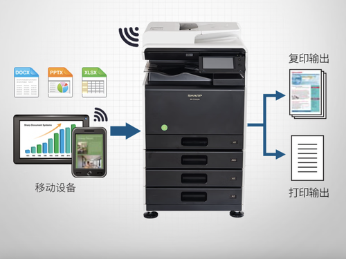 这款设备不仅可以将扫描的文档发送到智能手机和平板电脑等终端,并且还可以从这些智能终端上发送所需要的打印文档和照片,方便快捷,简单高效。