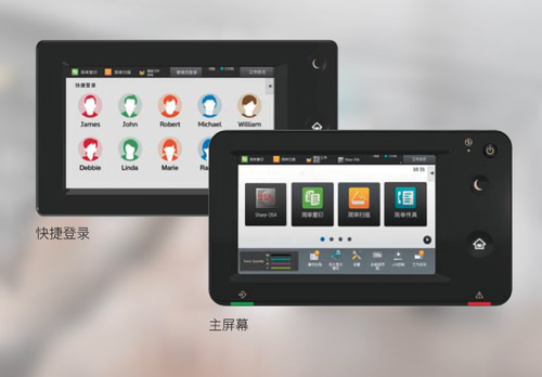 这款产品使用了高清的彩色的LCD触摸屏,各种功能采用清晰明了的设计图案,操作起来轻松且直观,新增了快捷登录功能,只需要轻触用户图标即可访问个人定制操作界面。