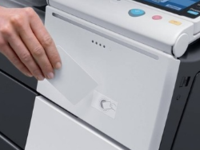 柯尼卡美能达刷卡认证解决方案是用户在打印/复印/扫描前,在多功能复合机上进行刷卡,通过身份安全认证后才可以输出文档,以此可以有效控制管理多功能数码复合机使用,目标该解决方案支持市场上多种主流的IC、ID卡,例如结合日常的门禁卡就可以使用。