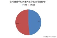 通过调查数据显示,参与调查的IT管理员,其中49%%的受调者对于企业现在所使用的复合机产品表示出不满意的情绪,而51%%的受调者则表示现在企业所使用的复合机产品非常满意。