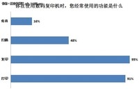 通过本次调查,参与此次调查活动被调查人中习惯使用复合机打印功能的站到了29%%,而熟悉网络打印的用户站到17%%,而经常使用复印功能的占到了25%%,扫描功能应用率仅为14%%,传真功能的使用仅为15%%。