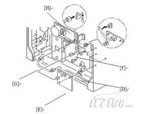 纸盘加热器(作为选购件的纸盘柜) 4.装上3只夹子【D】。 5.装上接口板【E】,将纸盘加热器的线束【F】连到接口板上。然后,如图中所示那样夹住线束。 6.将接口线束【G】与电机【H】以及接口板连接。 7.重新装好机器...