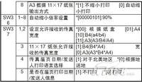 SW361~8自动缩小倍率设置*[00000101]:90%% SW371,2设定允许接收的传真宽度*[00]:根据纸盒 [01]:A4 [10]:B4(a4/b4) [11]:A3(A3/B4/A4) 311×17纸张允许接收的传真宽度[1]:B4(B4*A4)宽 [0]:A3(A3*B4*A4) 4传真眉页日期/发送人打印语言选择[1]:对于北美地区 *[0]:根据地送地...