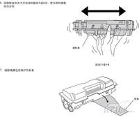 6. 将碳粉盒在水平方向来回摇动5或6次,使内部的均匀分布 7. 摘除橘黄色的保护性封条 8. 将碳粉盒装入处理器内...